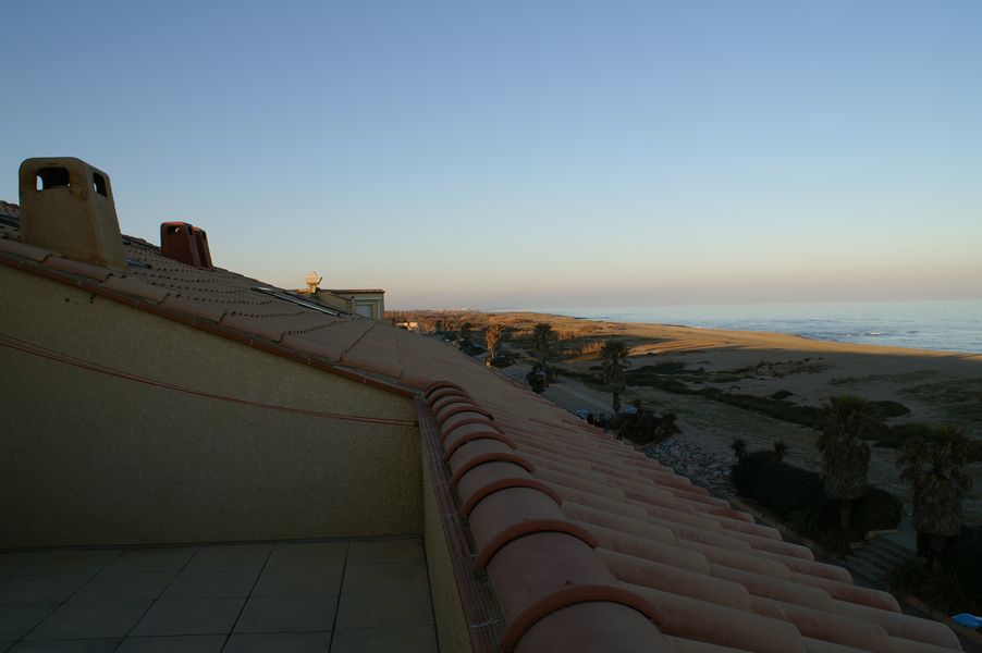 Appartement traversant, orienté à l'est (soleil du matin) jusque vers 15h00. Avec grand balcon face mer et solarium face mer à l'étage (dans le toit).